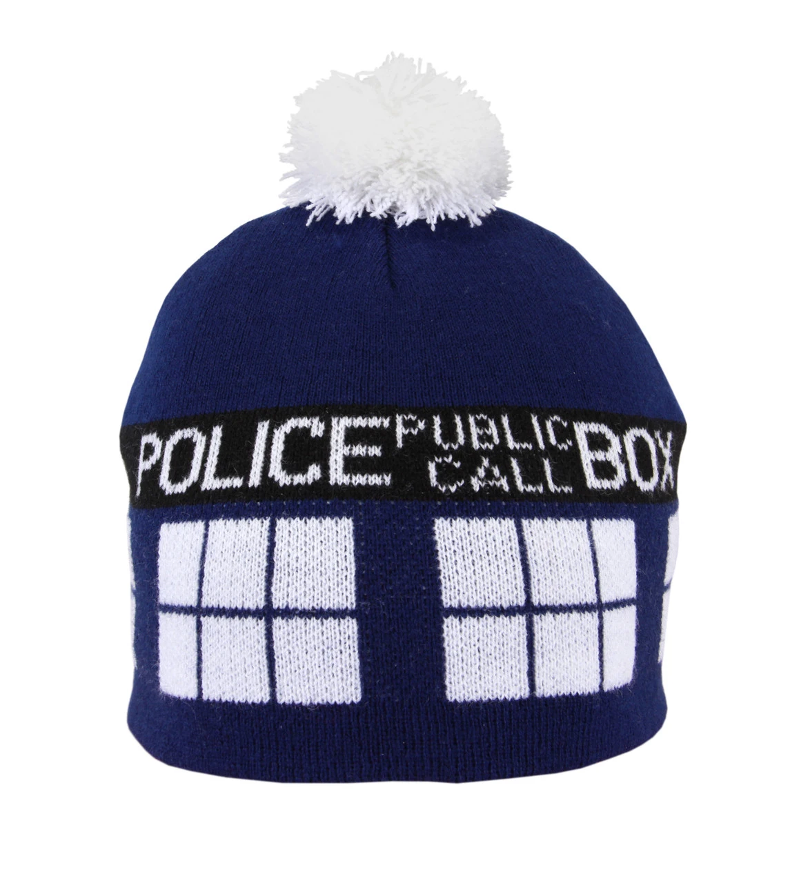 Introducing the ultimate Doctor Who TARDIS Wool Beanie with Pom Pom, a must-have accessory for every Whovian and time-travel enthusiast!