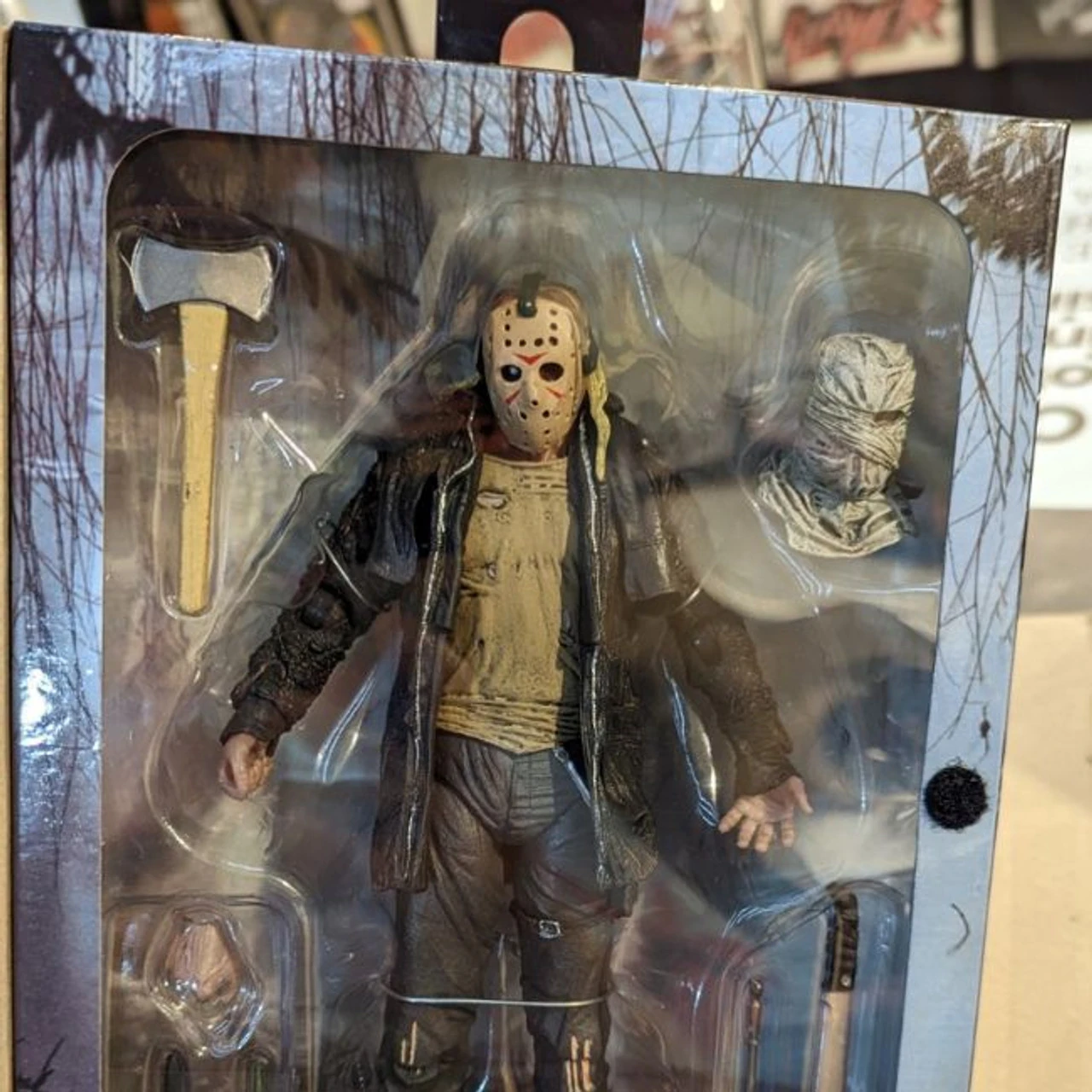 This realistic set will impress any horror fan. Jason stands at approx 19cm, is poseable and comes with accessoriesincluding axeaxe, machette and extra head.