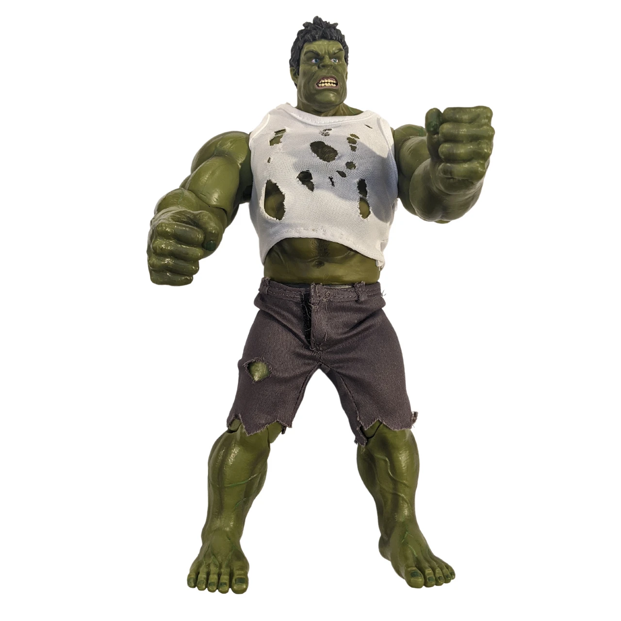 HULK MAD!!! Relive Hulks best moments with this poseable toy figurine. Stands 27cm high. Made from PVC with fabric shirt.