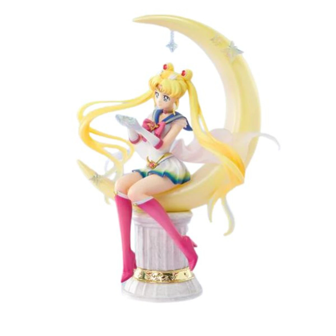 Made from PVC this lovely Sailor Moon figurine stands at approx 21cm high and features Sailor sitting on the moon.Â